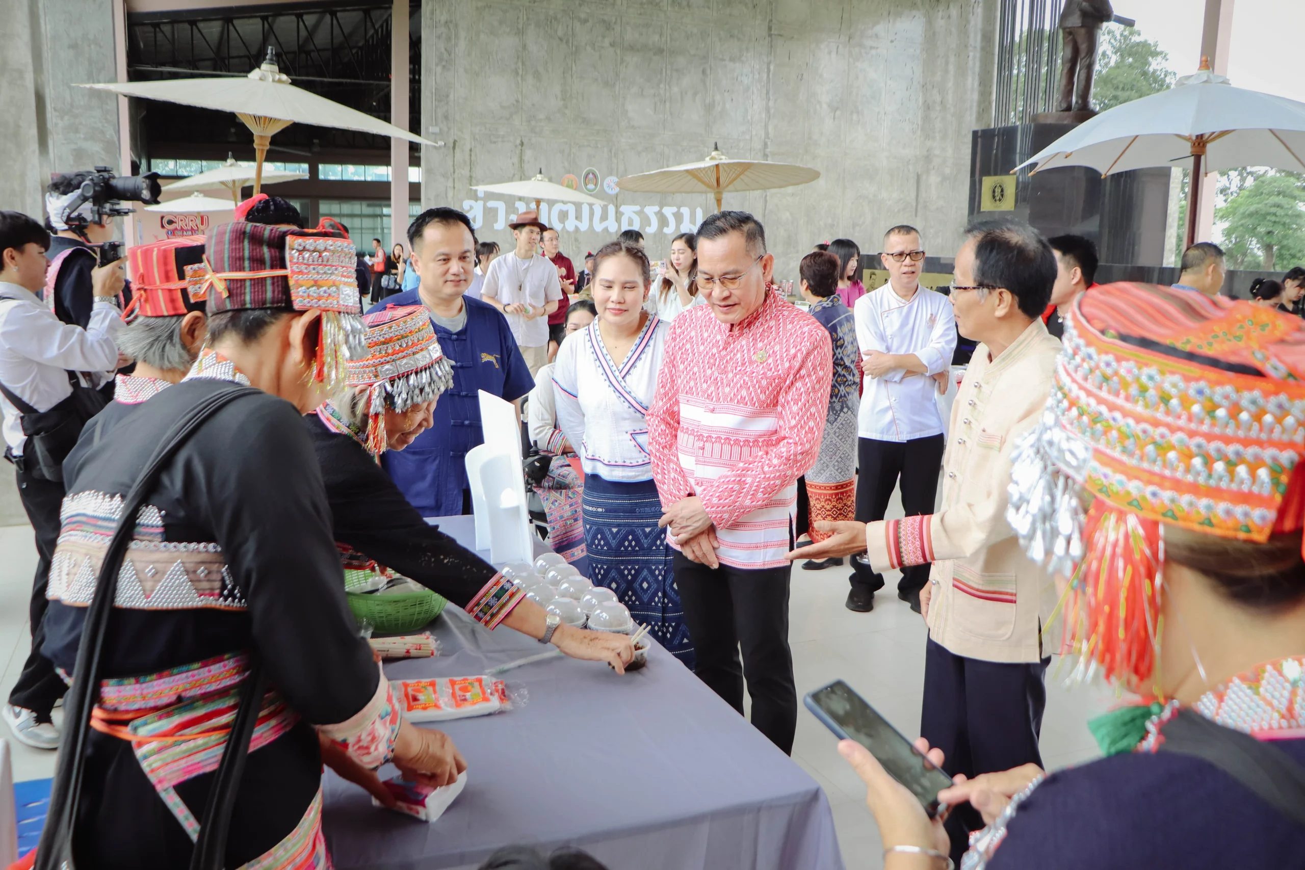 วันที่ 1 สิงหาคม 2568 สำนักศิลปะและวัฒนธรรม มหาวิทยาลัยราชภัฏเชียงราย ร่วมกับสมาคมวัฒนธรรมและการท่องเที่ยวชาติพันธุ์ จังหวัดเชียงราย จัดกิจกรรม “ข่วงวัฒนธรรม : อาหารชาติพันธุ์” ณ ลานกิจกรรม กองการสื่อสารองค์กร สำนักงานอธิการบดี โดยได้รับเกียรติจาก รองศาสตราจารย์ ดร.ศรชัย มุ่งไธสง อธิการบดีมหาวิทยาลัยฯ เป็นประธานในพิธีเปิดงาน