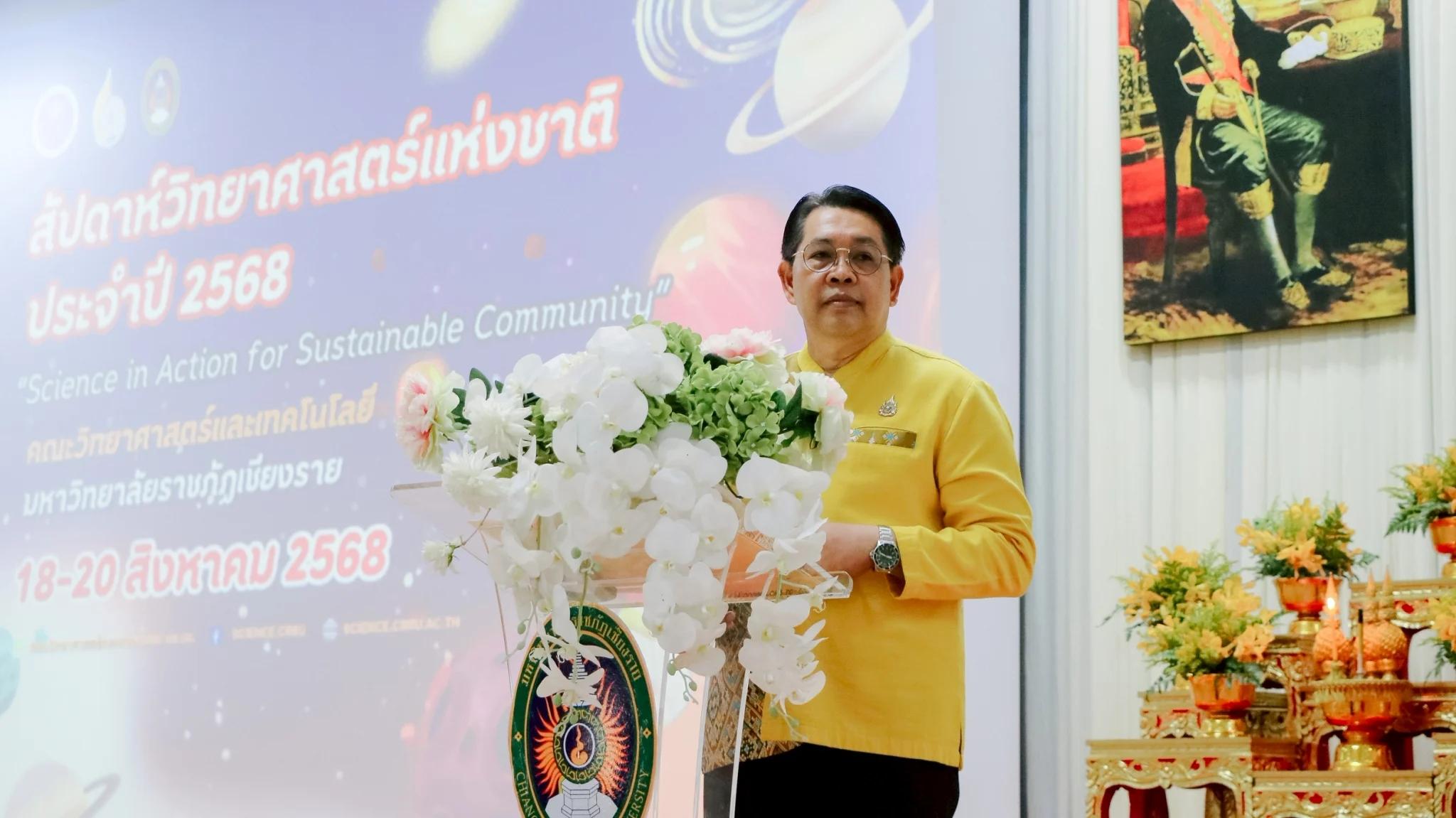วันที่ 18 สิงหาคม 2568 คณะวิทยาศาสตร์และเทคโนโลยี มหาวิทยาลัยราชภัฏเชียงราย เปิดงาน “สัปดาห์วิทยาศาสตร์แห่งชาติ ประจำปี 2568” โดยได้รับเกียรติจาก ผู้ช่วยศาสตราจารย์ ดร.จำรัส กลิ่นหนู รองอธิการบดีมหาวิทยาลัยราชภัฏเชียงราย เป็นประธานในพิธี