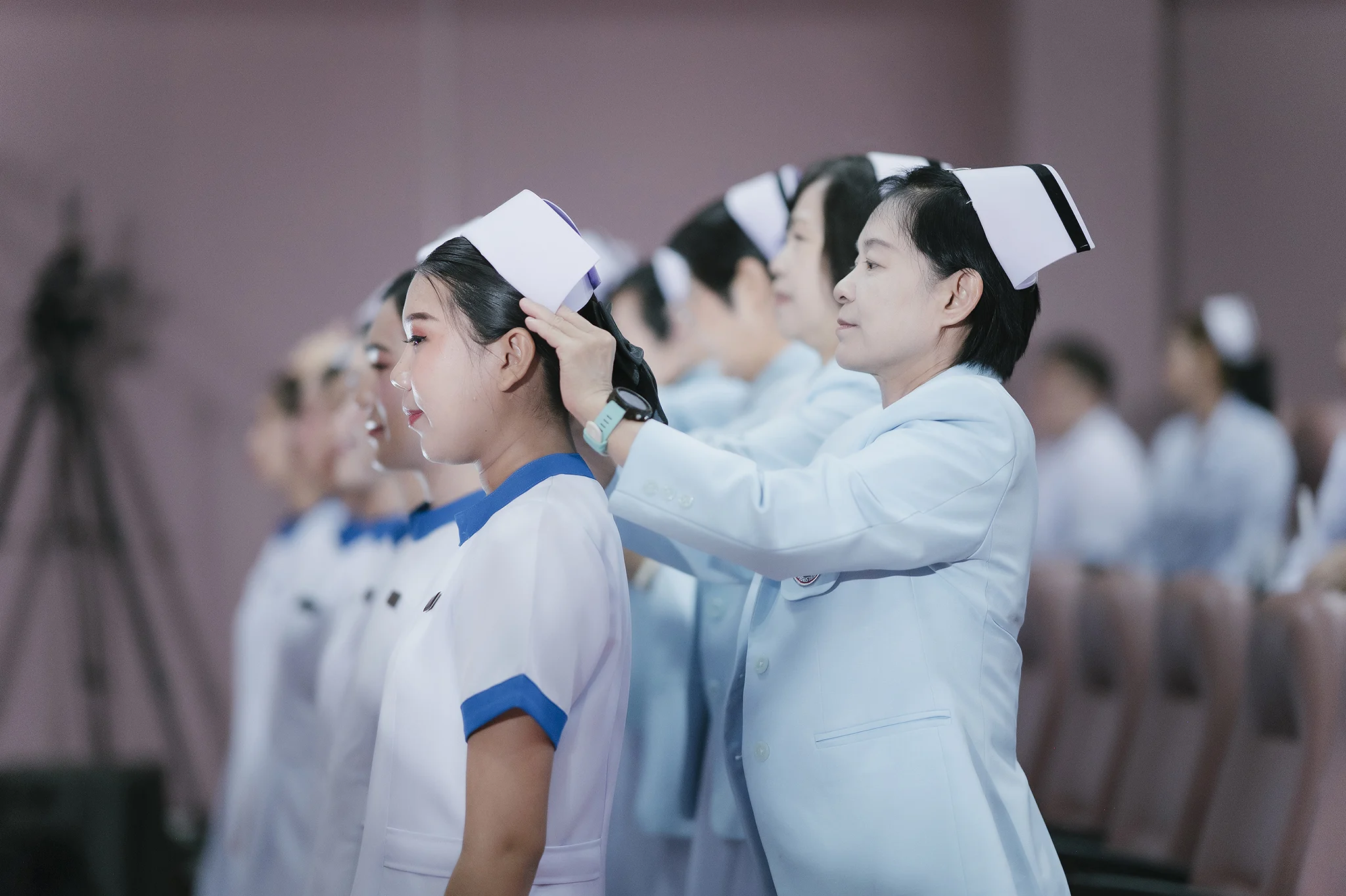 วันที่ 22 สิงหาคม 2568 คณะพยาบาลศาสตร์ มหาวิทยาลัยราชภัฏเชียงราย จัดพิธีมอบหมวกและประดับเข็มชั้นปีให้แก่นักศึกษาพยาบาลชั้นปีที่ 2 รุ่นที่ 2 ประจำปีการศึกษา 2568 ณ อาคารเรียนรวม 101 โดยได้รับเกียรติจาก ผู้ช่วยศาสตราจารย์ ดร.จำรัส กลิ่นหนู รองอธิการบดี เป็นประธานในพิธี ศาสตราจารย์ ดร.เกษราวัลณ์ นิลวรางกูร คณบดีคณะพยาบาลศาสตร์ กล่าวรายงานวัตถุประสงค์ของการจัดพิธี ซึ่งเป็นสัญลักษณ์ของการก้าวเข้าสู่เส้นทางวิชาชีพพยาบาลอย่างแท้จริง โดยในปีนี้มีนักศึกษาเข้ารับหมวกและเข็มชั้นปี รวมทั้งสิ้น 79 คน