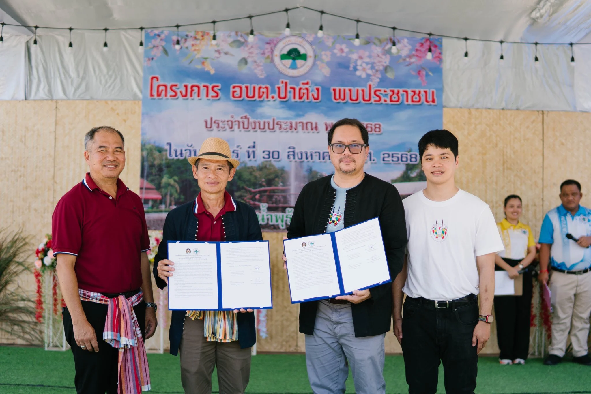 พิธีลงนามในครั้งนี้ได้รับเกียรติจาก ผู้ช่วยศาสตราจารย์ ดร.องอาจ อินทนิเวศ รองผู้อำนวยการสถาบันวิจัยและพัฒนามหาวิทยาลัยราชภัฏเชียงราย พร้อมด้วยนักวิจัยที่ได้รับการสนับสนุนทุน Fundamental Fund ประจำปี พ.ศ. 2568 ในพื้นที่ตำบลป่าตึง ร่วมลงนามกับนายณฐกรณ์ ใจรังสี นายกองค์การบริหารส่วนตำบลป่าตึง และคณะผู้บริหาร