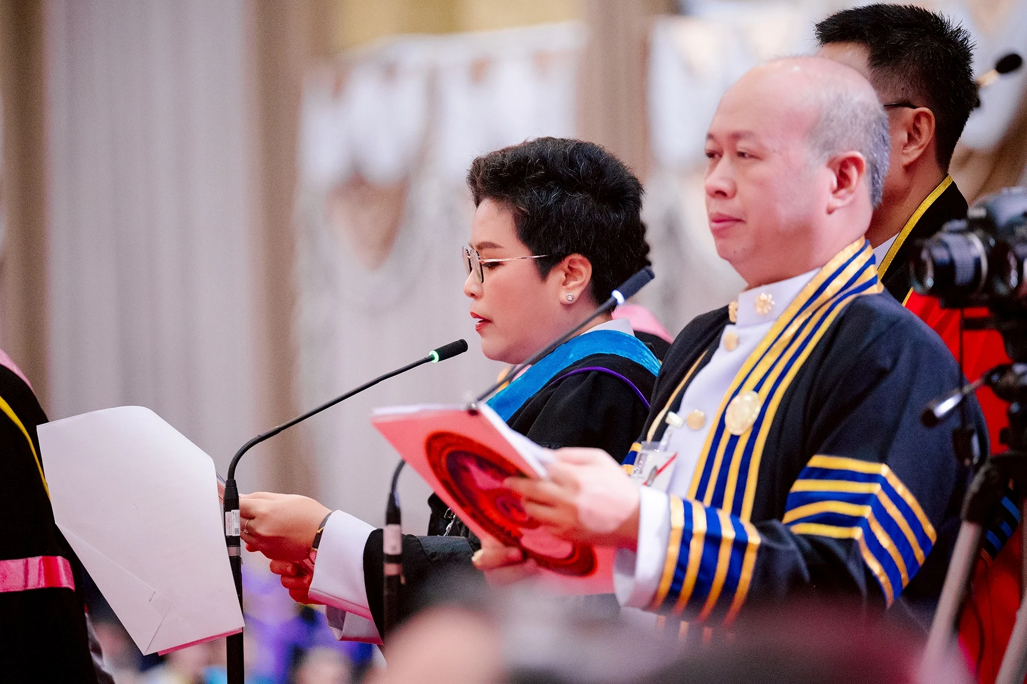 ในการนี้ ศาสตราจารย์เกียรติคุณ ดร.มนัส สุวรรณ นายกสภามหาวิทยาลัยราชภัฏเชียงราย พร้อมด้วย รองศาสตราจารย์ ดร.ไพโรจน์ ด้วงนคร อธิการบดีมหาวิทยาลัยราชภัฏเชียงราย คณะผู้บริหาร และคณาจารย์ ร่วมให้การต้อนรับและร่วมในพิธีอย่างพร้อมเพรียง