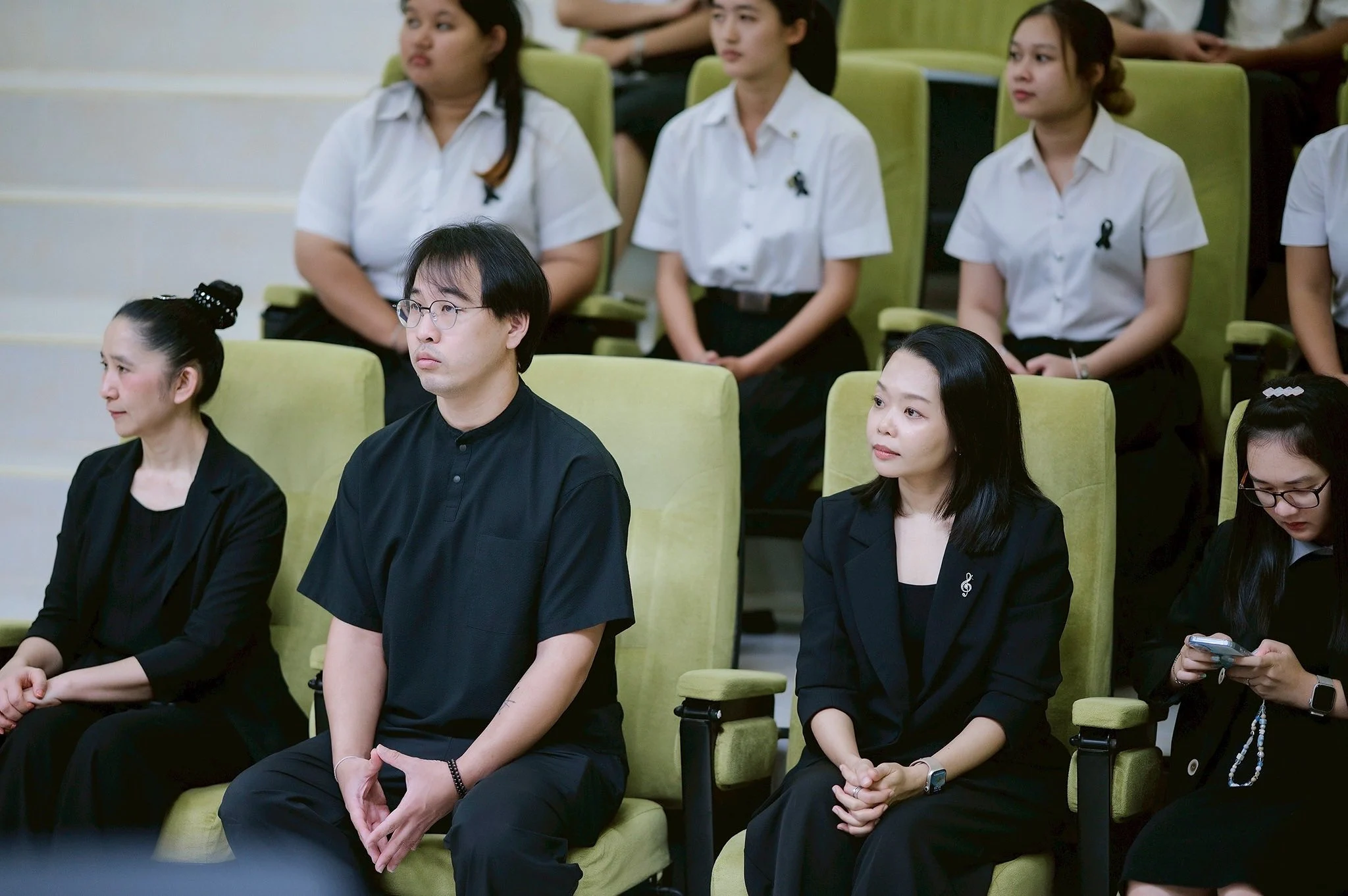 ในโอกาสนี้ นักศึกษาสาขาวิชาศิลปกรรมศาสตร์ แขนงวิชาดุริยางคศิลป์ ได้ร่วมบรรเลงเพลงเดี่ยวเปียโนเพื่อแสดงความขอบคุณแด่ Dr.Wang Jianding และ Ms.Zhou Juan อย่างอบอุ่นและซาบซึ้งใจ เสียงดนตรีที่เปล่งออกมาในวันนั้น ไม่เพียงเป็นท่วงทำนองแห่งความขอบคุณ แต่ยังเป็นสัญลักษณ์ของแรงบันดาลใจที่ส่งต่อจากศิษย์เก่าสู่รุ่นน้อง