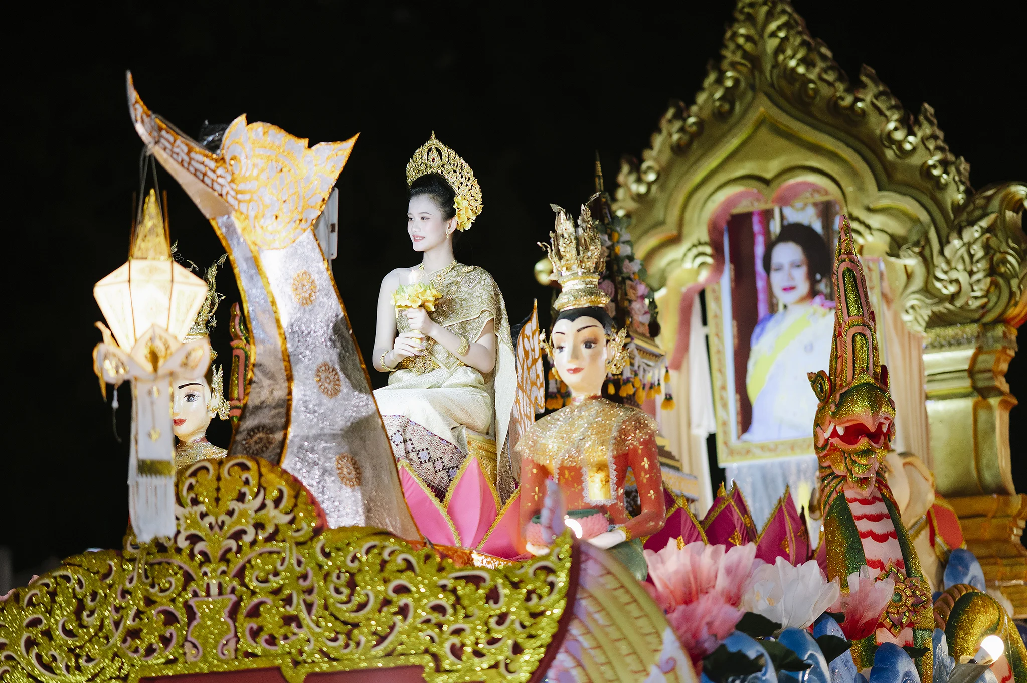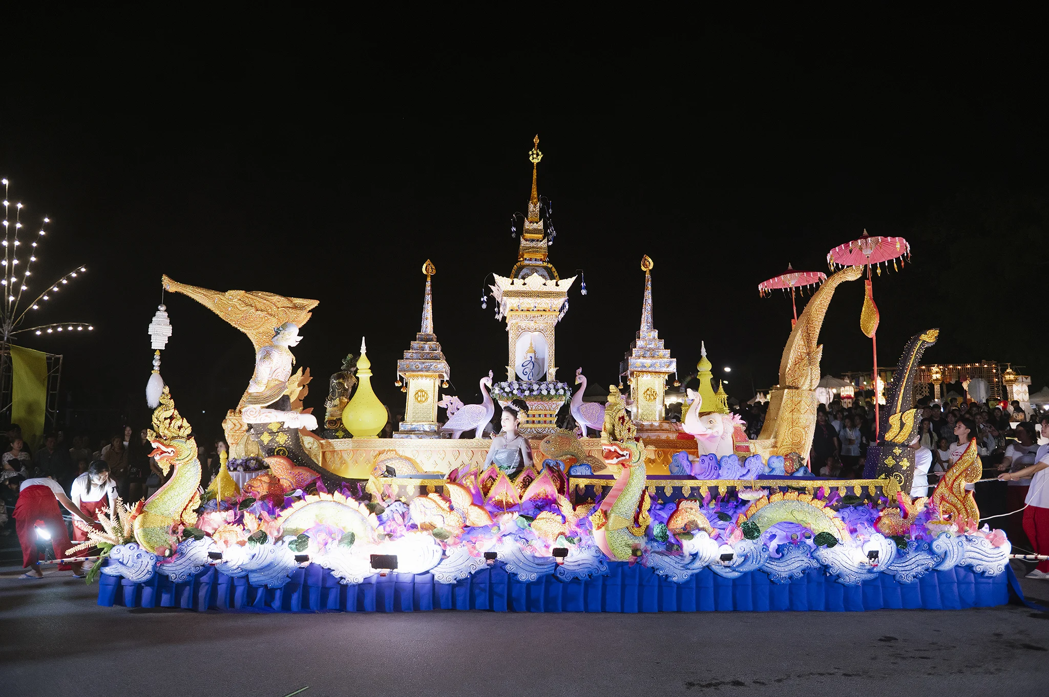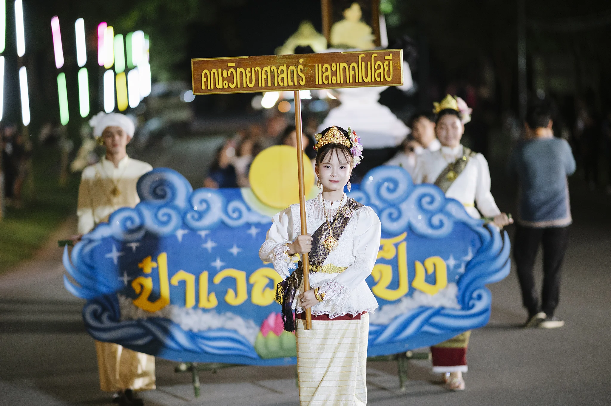 บรรยากาศภายในงานเต็มไปด้วยความวิจิตรตระการตาของ ริ้วขบวนกระทงใหญ่จากทุกคณะ ที่ร่วมกันสร้างสรรค์ผลงานอย่างประณีต ถ่ายทอดเอกลักษณ์ทางศิลปวัฒนธรรมล้านนา ผ่านรูปแบบกระทงที่งดงามและสื่อความหมายถึงความศรัทธา ความสามัคคี และการขอขมาต่อพระแม่คงคา ขบวนแห่ได้เคลื่อนผ่านเส้นทางภายในมหาวิทยาลัย มุ่งสู่เวทีจัดกิจกรรมบริเวณ หน้าหอปรัชญารัชกาลที่ 9