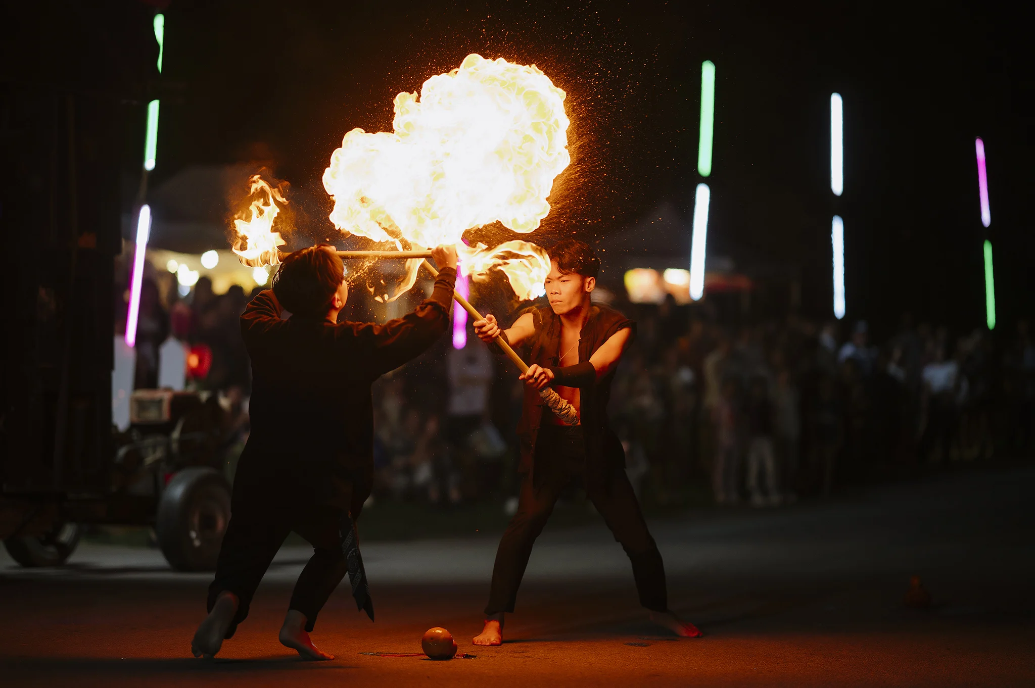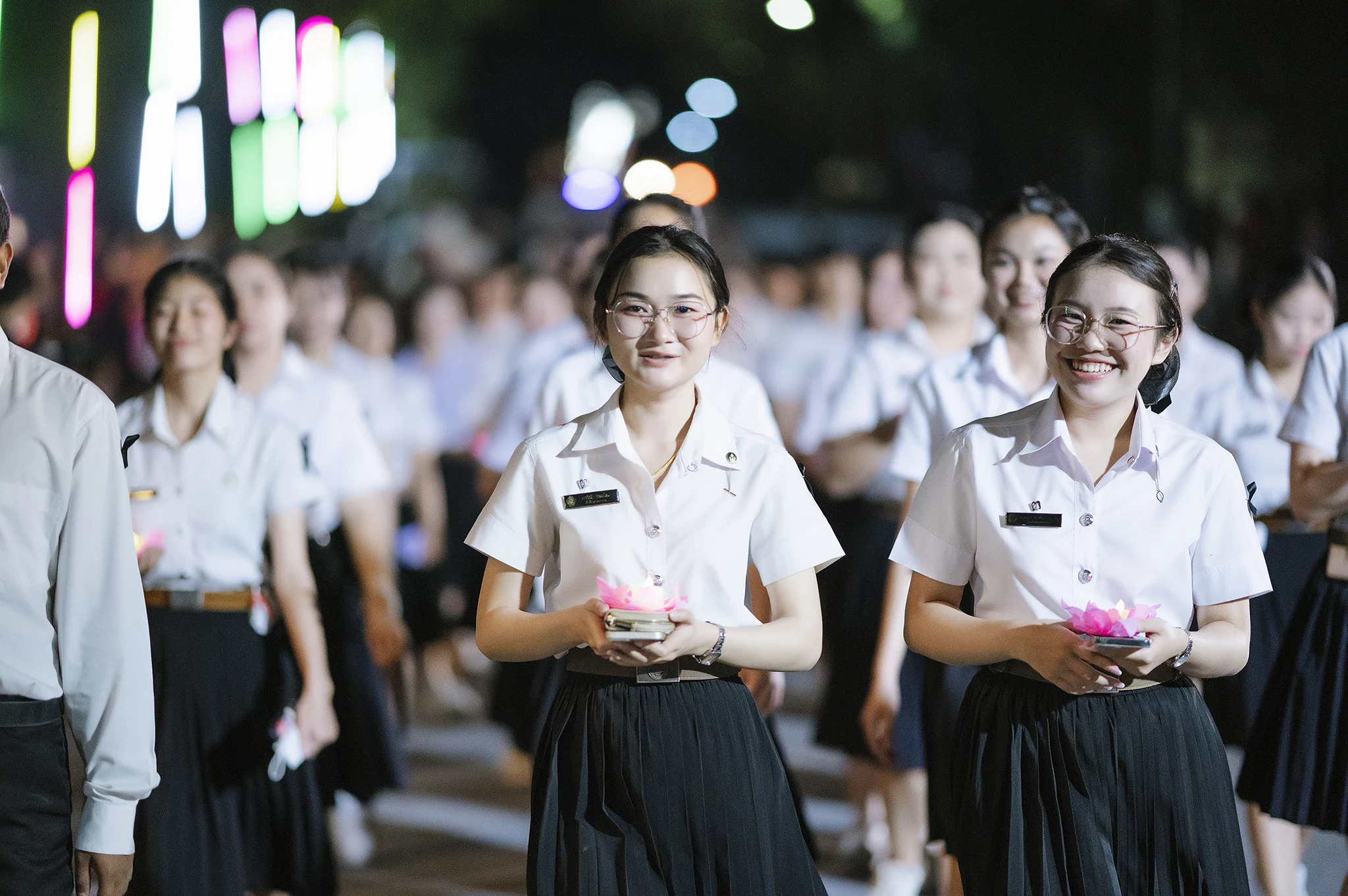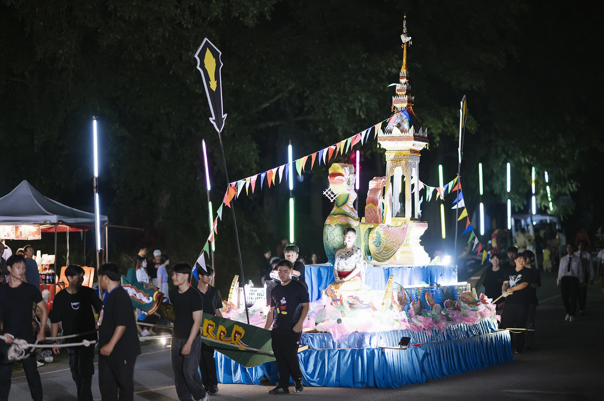บรรยากาศภายในงานเต็มไปด้วยความวิจิตรตระการตาของ ริ้วขบวนกระทงใหญ่จากทุกคณะ ที่ร่วมกันสร้างสรรค์ผลงานอย่างประณีต ถ่ายทอดเอกลักษณ์ทางศิลปวัฒนธรรมล้านนา ผ่านรูปแบบกระทงที่งดงามและสื่อความหมายถึงความศรัทธา ความสามัคคี และการขอขมาต่อพระแม่คงคา ขบวนแห่ได้เคลื่อนผ่านเส้นทางภายในมหาวิทยาลัย มุ่งสู่เวทีจัดกิจกรรมบริเวณ หน้าหอปรัชญารัชกาลที่ 9