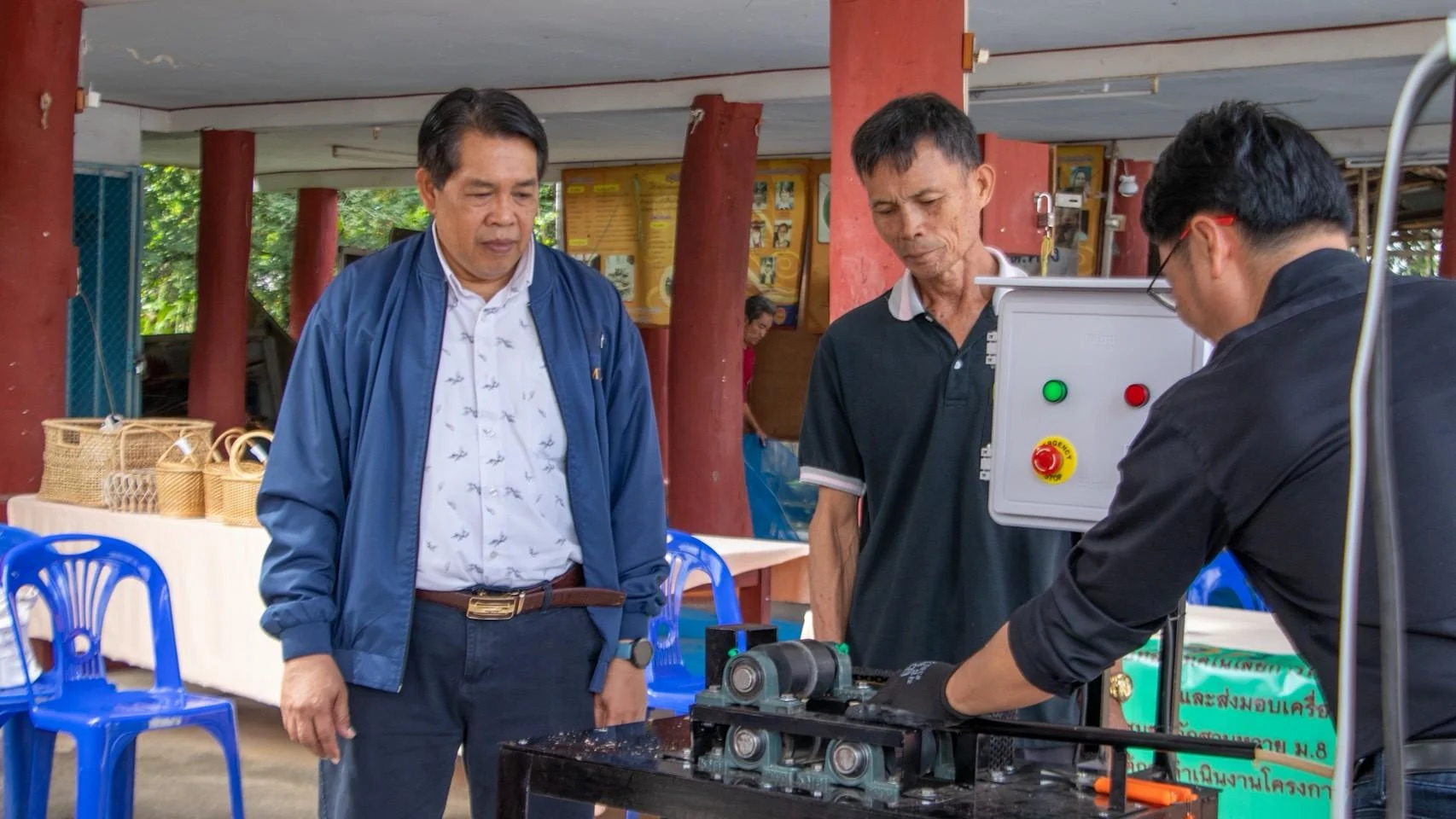 ต่อมาในปี 2567 ชุมชนได้เสนอความต้องการ “เครื่องผ่าหวาย” และการออกแบบผลิตภัณฑ์จากหวายรูปแบบใหม่ที่ทันสมัยและทนทาน เพื่อสร้างความแตกต่างในตลาด มรภ.เชียงรายจึงส่งทีมวิจัย ได้แก่ ผศ.วิบูลย์พร วุฒิคุณ และ ผศ.ดร.ชัชชัย วรพัฒน์ จากคณะเทคโนโลยีอุตสาหกรรม ร่วมพัฒนานวัตกรรมดังกล่าวจนสำเร็จ ทั้ง เครื่องผ่าหวายที่มีประสิทธิภาพสูง และ ต้นแบบผลิตภัณฑ์หวายสมัยใหม่ ที่มีความโดดเด่นทั้งด้านดีไซน์และความคงทน ป้องกันปัญหามอดกัดกิน