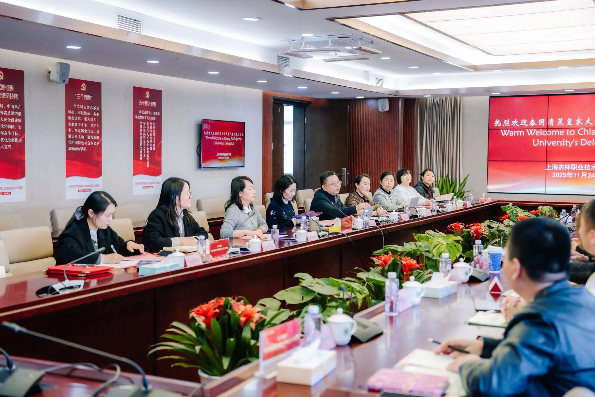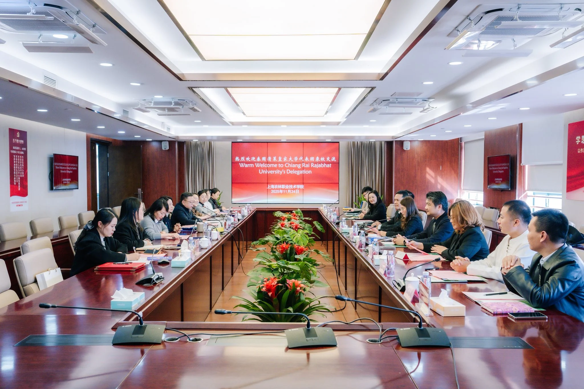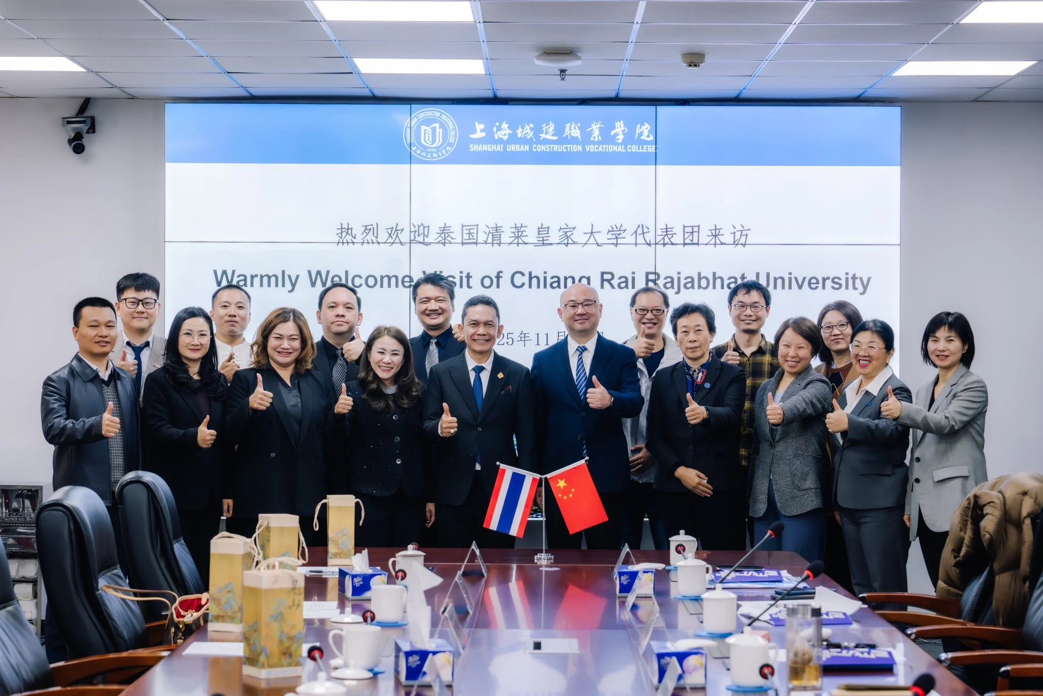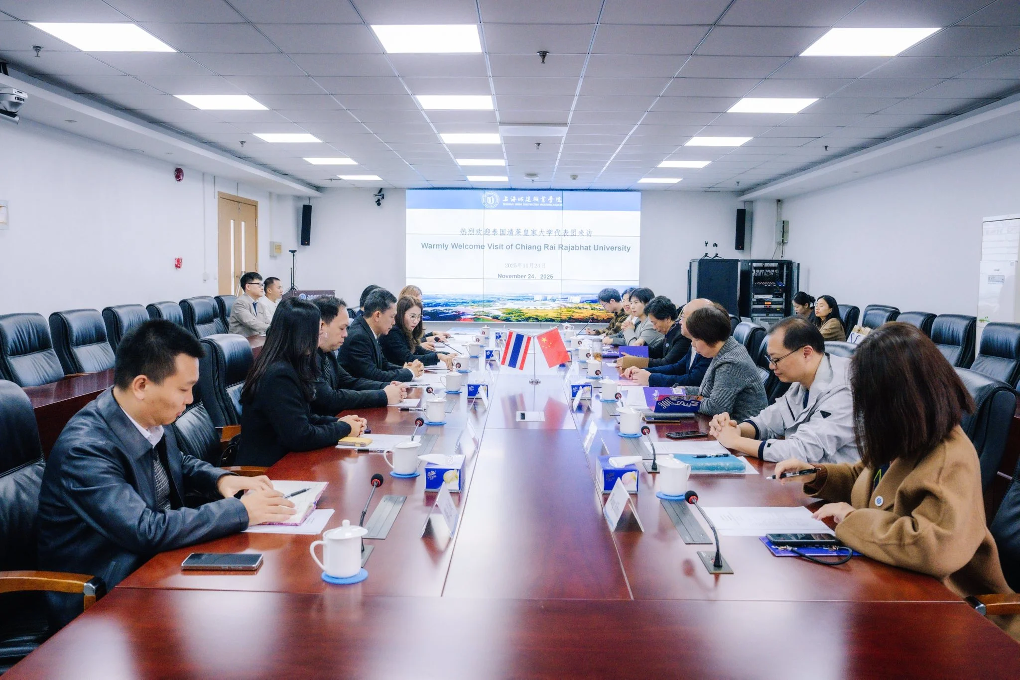 วันที่ 24 พฤศจิกายน 2568 มหาวิทยาลัยราชภัฏเชียงราย โดยรองศาสตราจารย์ ดร.ไพโรจน์ ด้วงนคร อธิการบดี และคณะผู้บริหาร เดินทางเยือน Shanghai Urban Construction Vocational College เพื่อหารือขยายความร่วมมือด้านการเรียนการสอนและวิชาชีพ โดยได้รับการต้อนรับจากศาสตราจารย์ ดร. Zhang Jingrong อธิการบดี