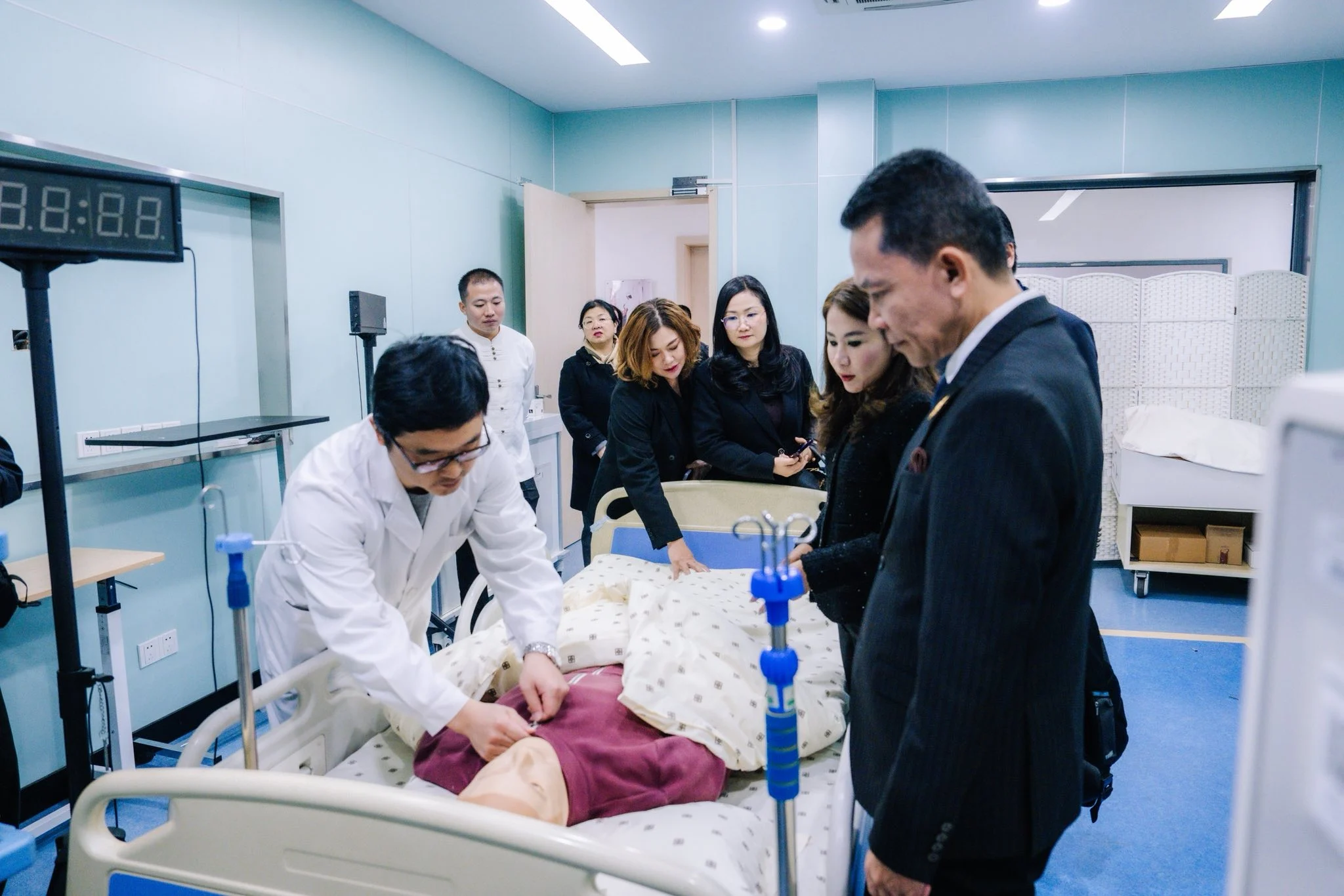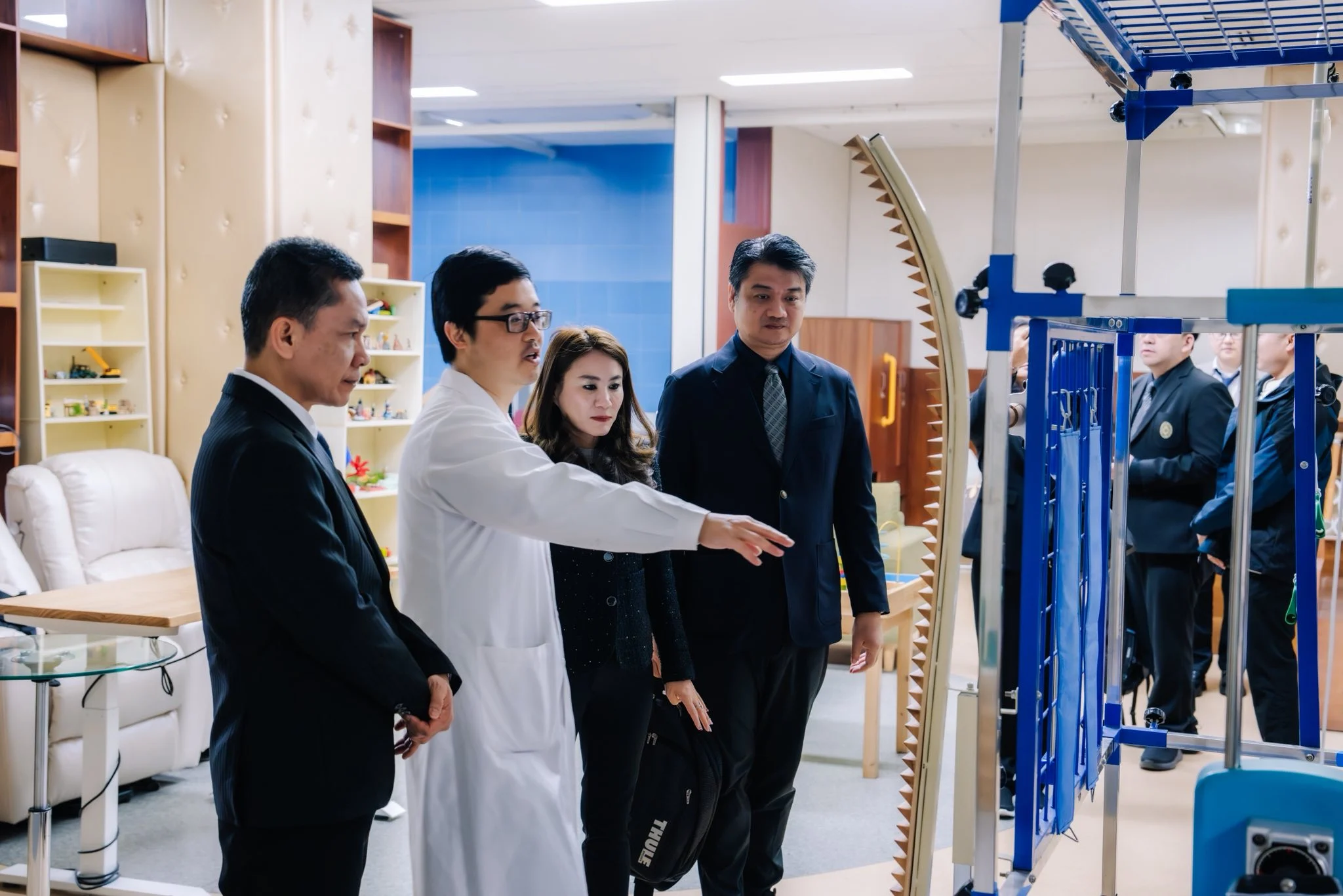 คณะผู้บริหารยังได้เยี่ยมชม Smart Elderly Care AI Training Center ศูนย์ปฏิบัติการต้นแบบด้าน AI สำหรับการดูแลผู้สูงอายุ ที่ผสานเทคโนโลยี AI, IoT และระบบบ้านอัจฉริยะ รองรับการพัฒนาบุคลากรสุขภาพยุคใหม่