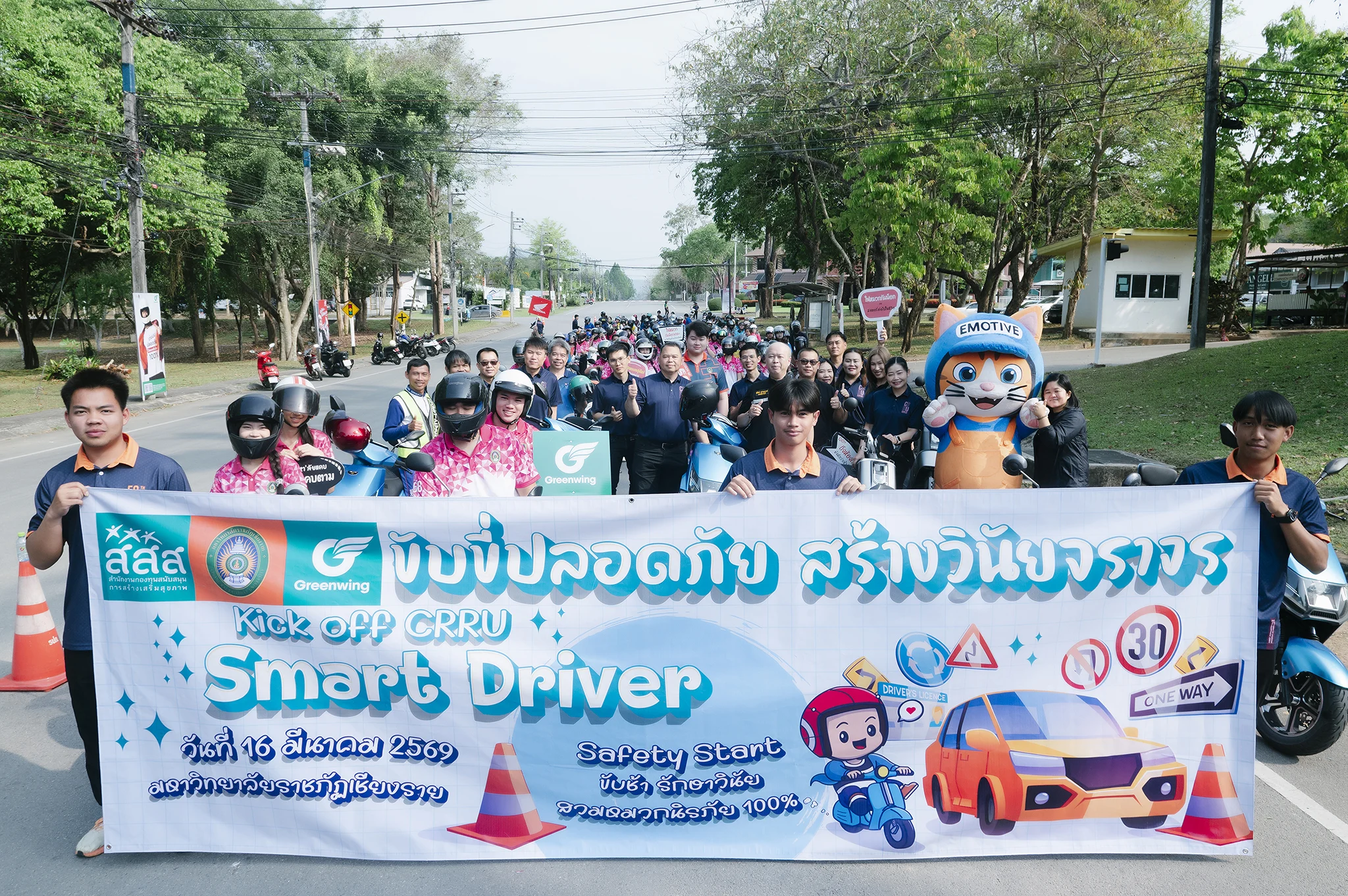 วันที่ 16 มีนาคม 2569 มหาวิทยาลัยราชภัฏเชียงราย โดยกองพัฒนานักศึกษา จัดกิจกรรมรณรงค์ “วันขับขี่ปลอดภัย สร้างวินัยจราจร” ณ เวทีกลางแจ้ง มหาวิทยาลัยราชภัฏเชียงราย โดยมี ผู้ช่วยศาสตราจารย์ ดร.สุทัศน์ คล้ายสุวรรณ์ รองอธิการบดีมหาวิทยาลัยราชภัฏเชียงราย เป็นประธานเปิดกิจกรรม เพื่อส่งเสริมและปลูกจิตสำนึกด้านความปลอดภัยทางถนนให้แก่นักศึกษาและบุคลากรภายในมหาวิทยาลัย